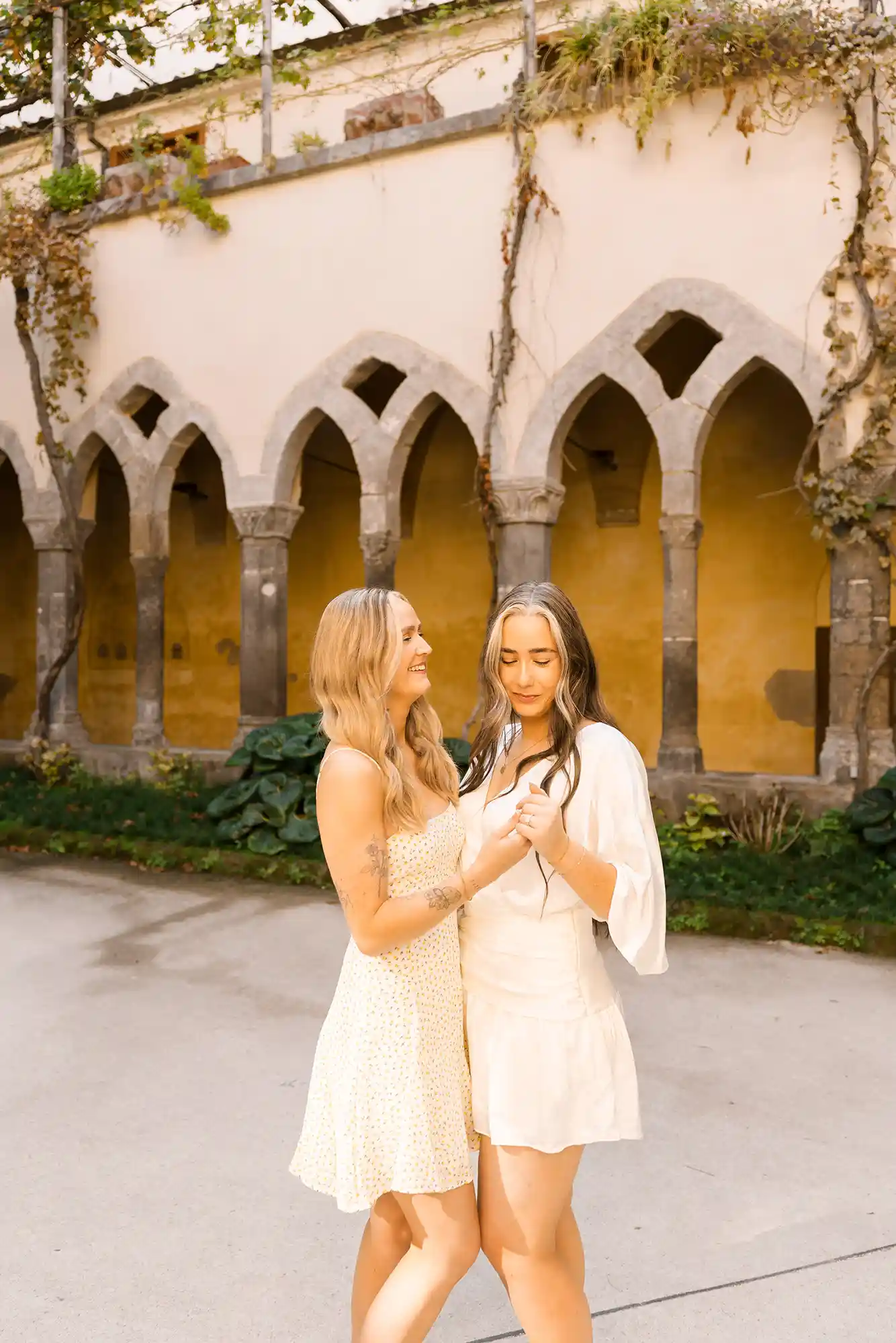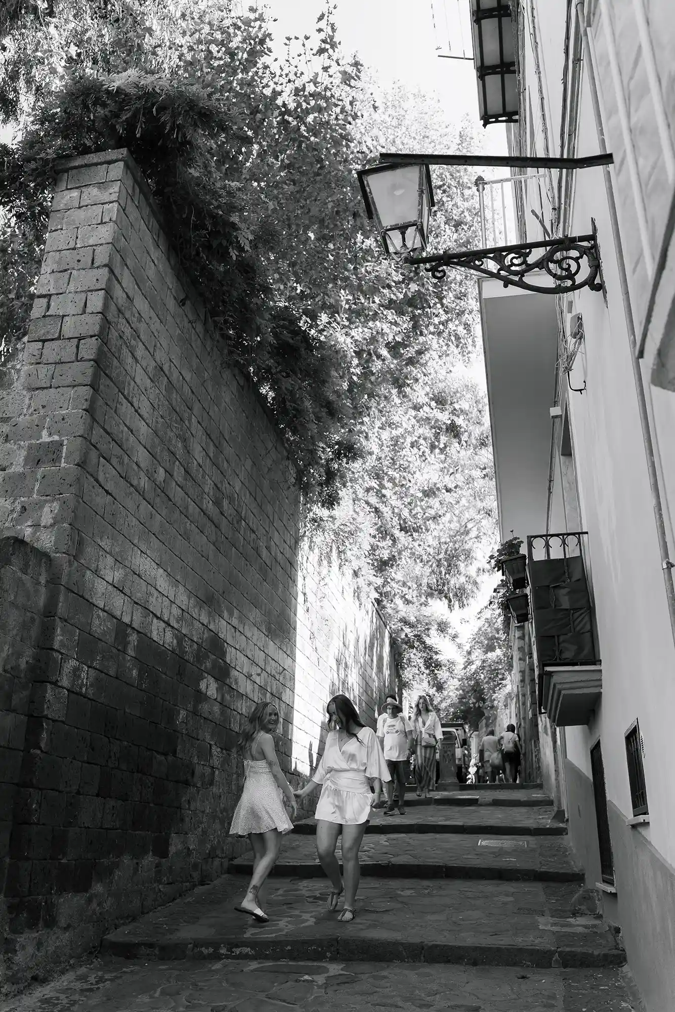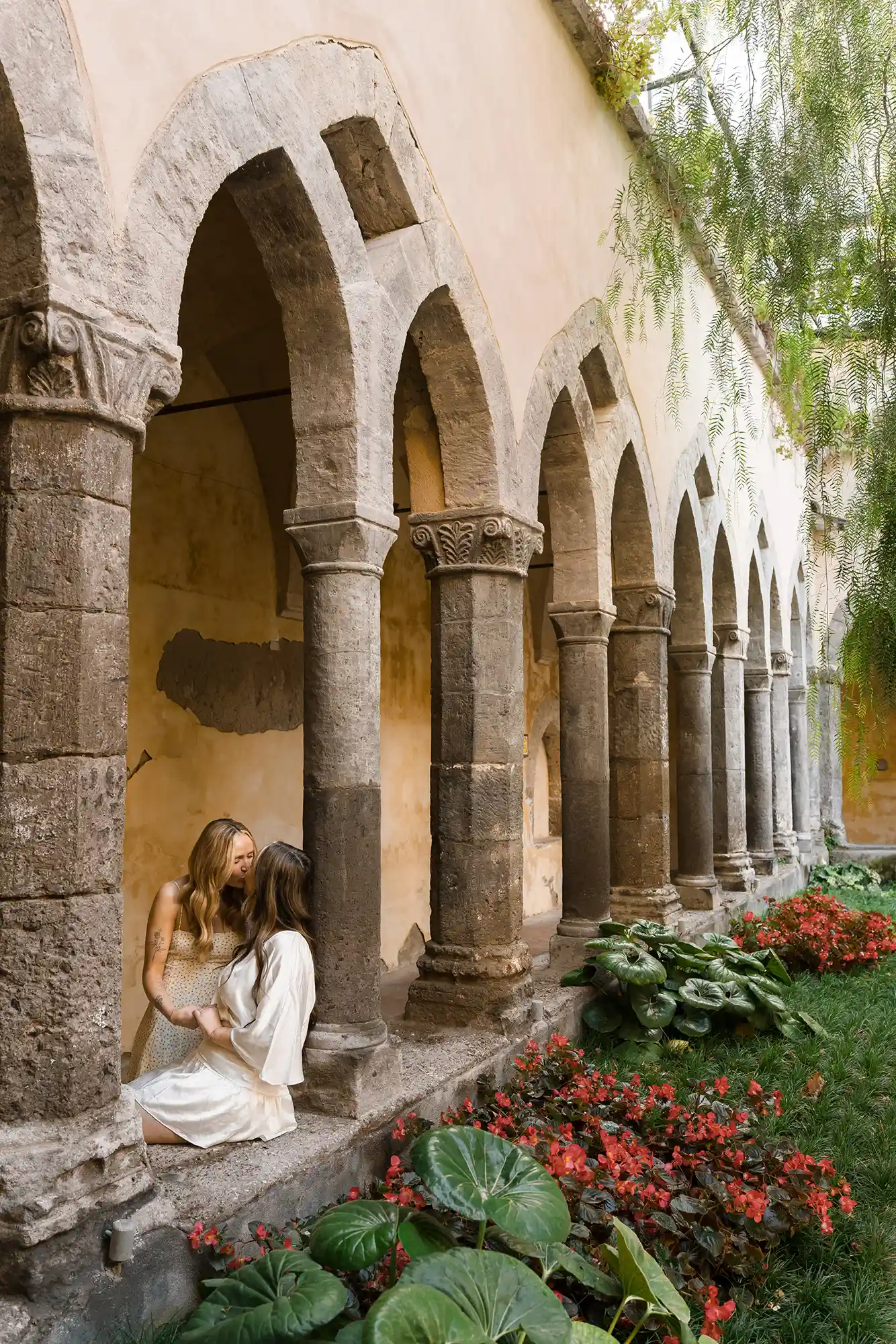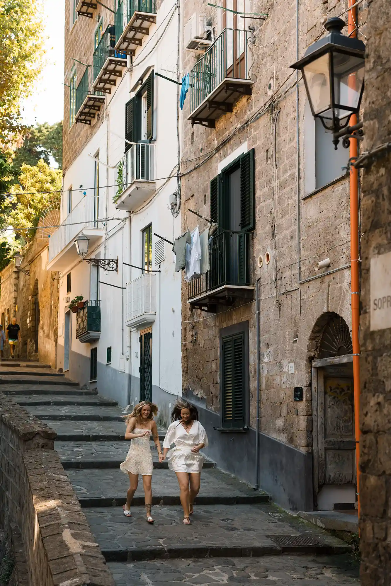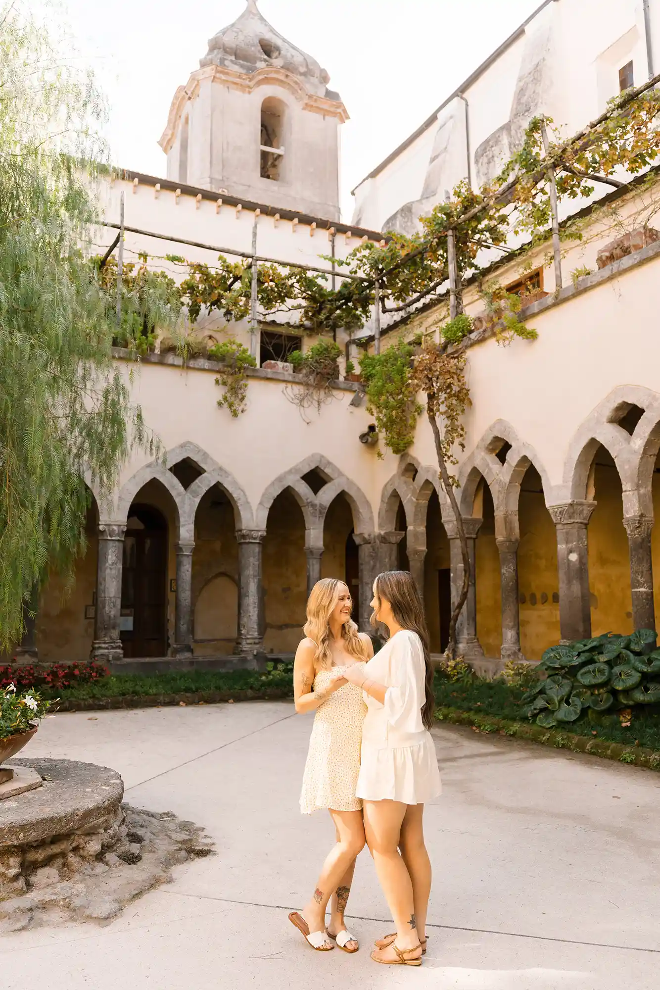 I had carefully prepared a few references for our photography session, imagining soft movements and natural connection. But as soon as we met in the center of Sorrento, near its beautiful historic church and Chiostro di San Francesco, everything became effortless. Their energy was open, joyful, and so genuine that posing almost felt unnecessary.