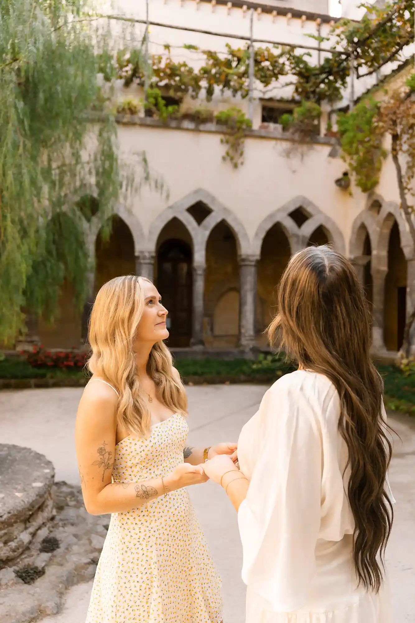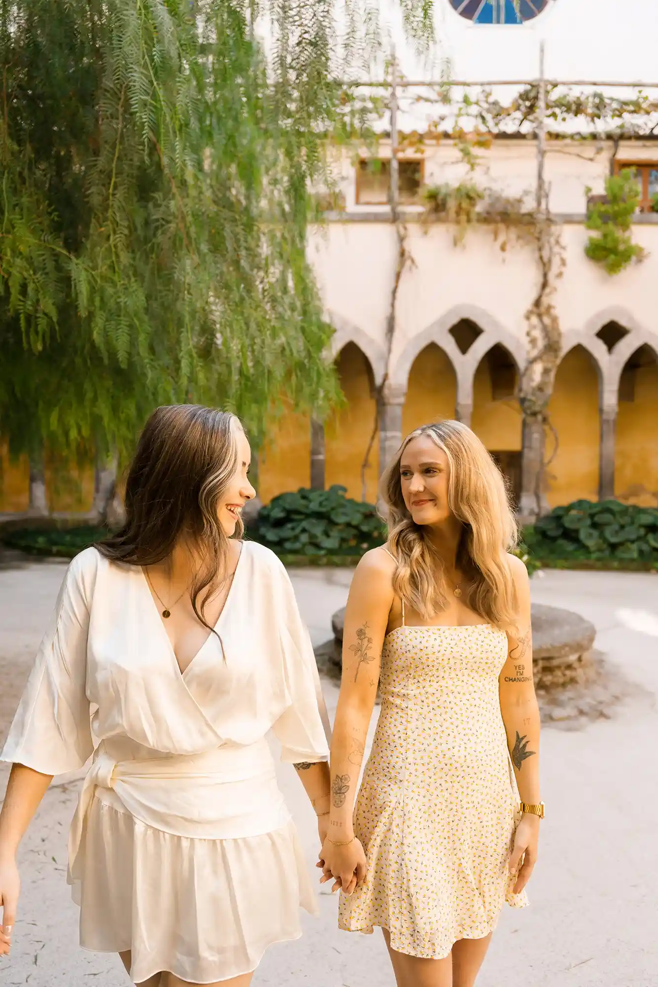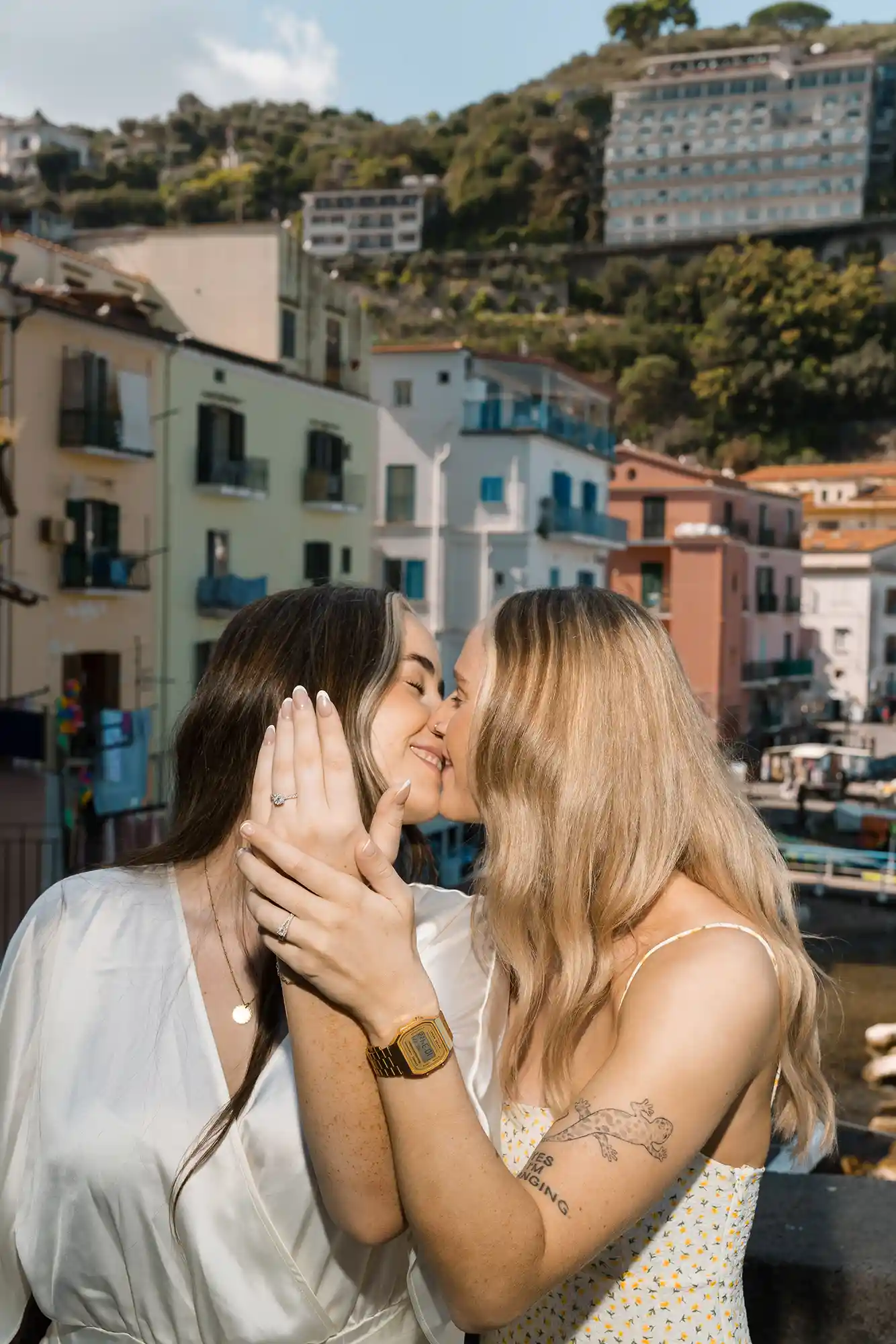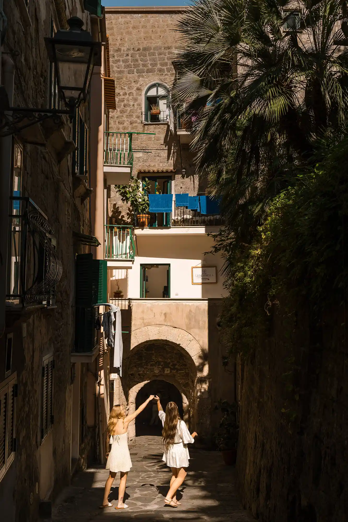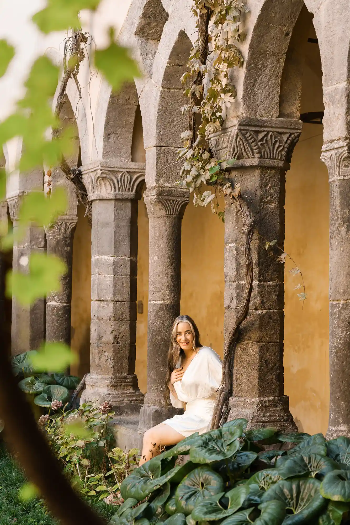 I had carefully prepared a few references for our photography session, imagining soft movements and natural connection. But as soon as we met in the center of Sorrento, near its beautiful historic church and Chiostro di San Francesco, everything became effortless. Their energy was open, joyful, and so genuine that posing almost felt unnecessary.