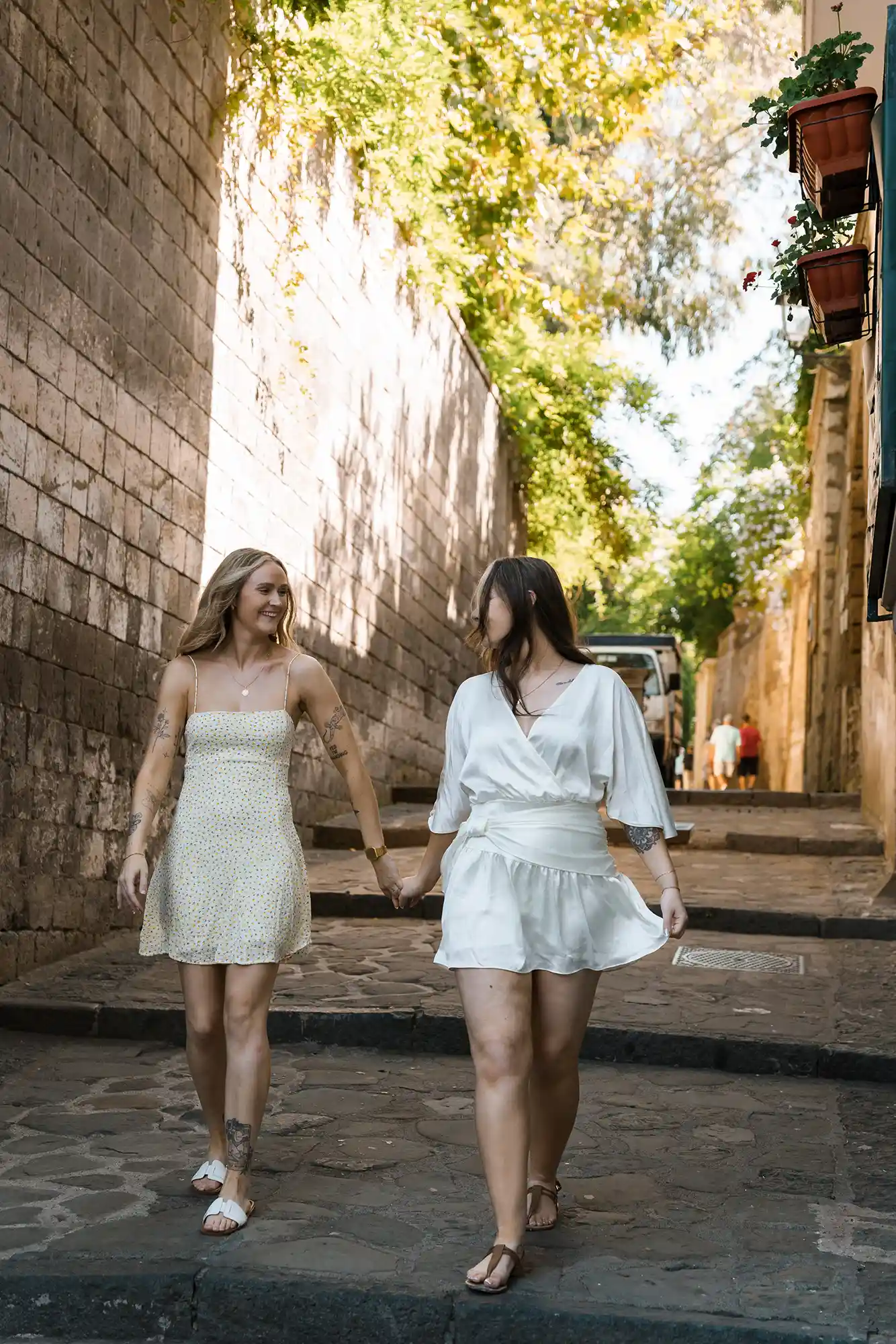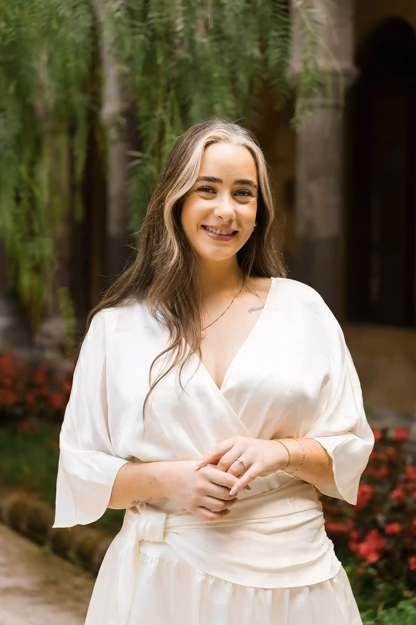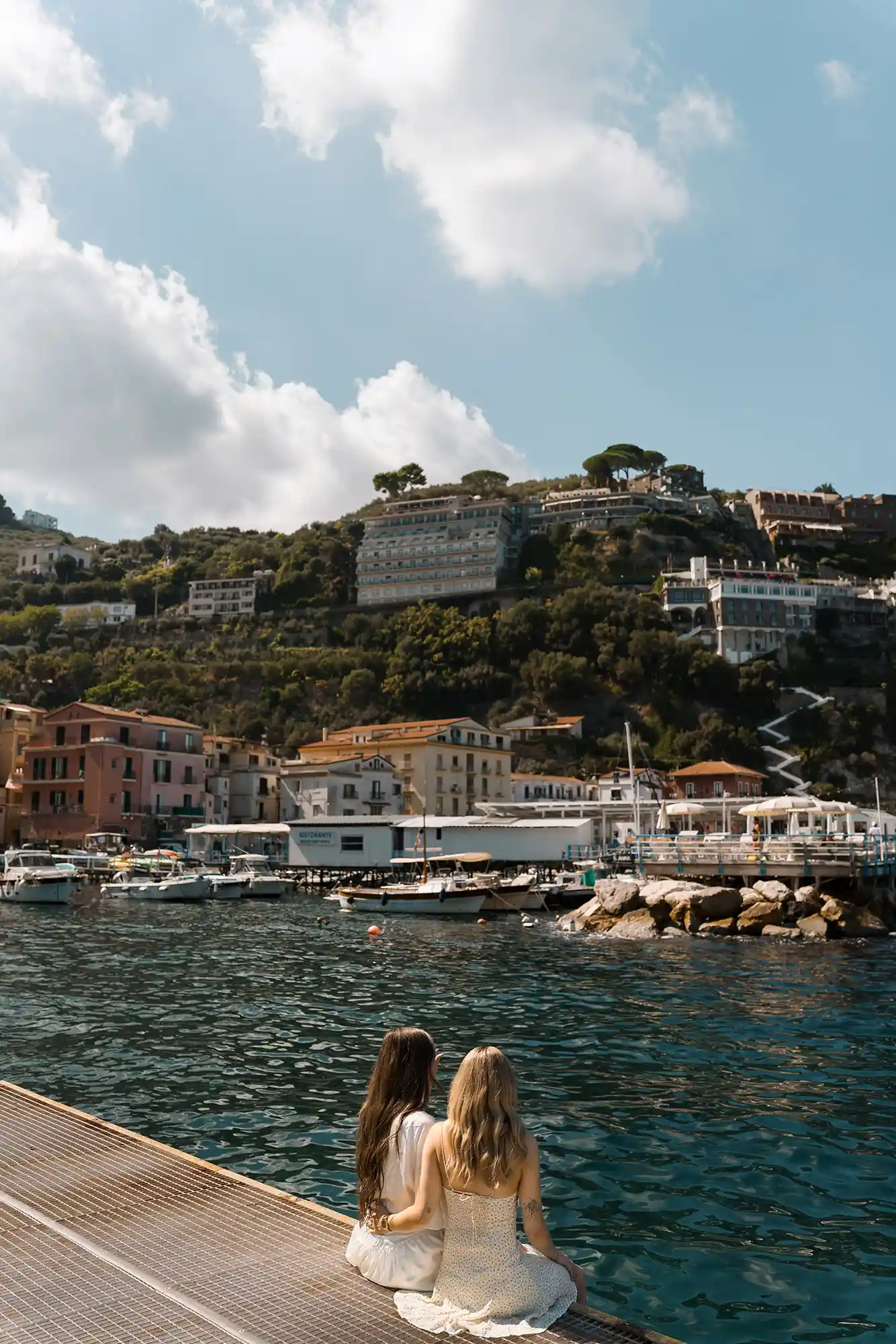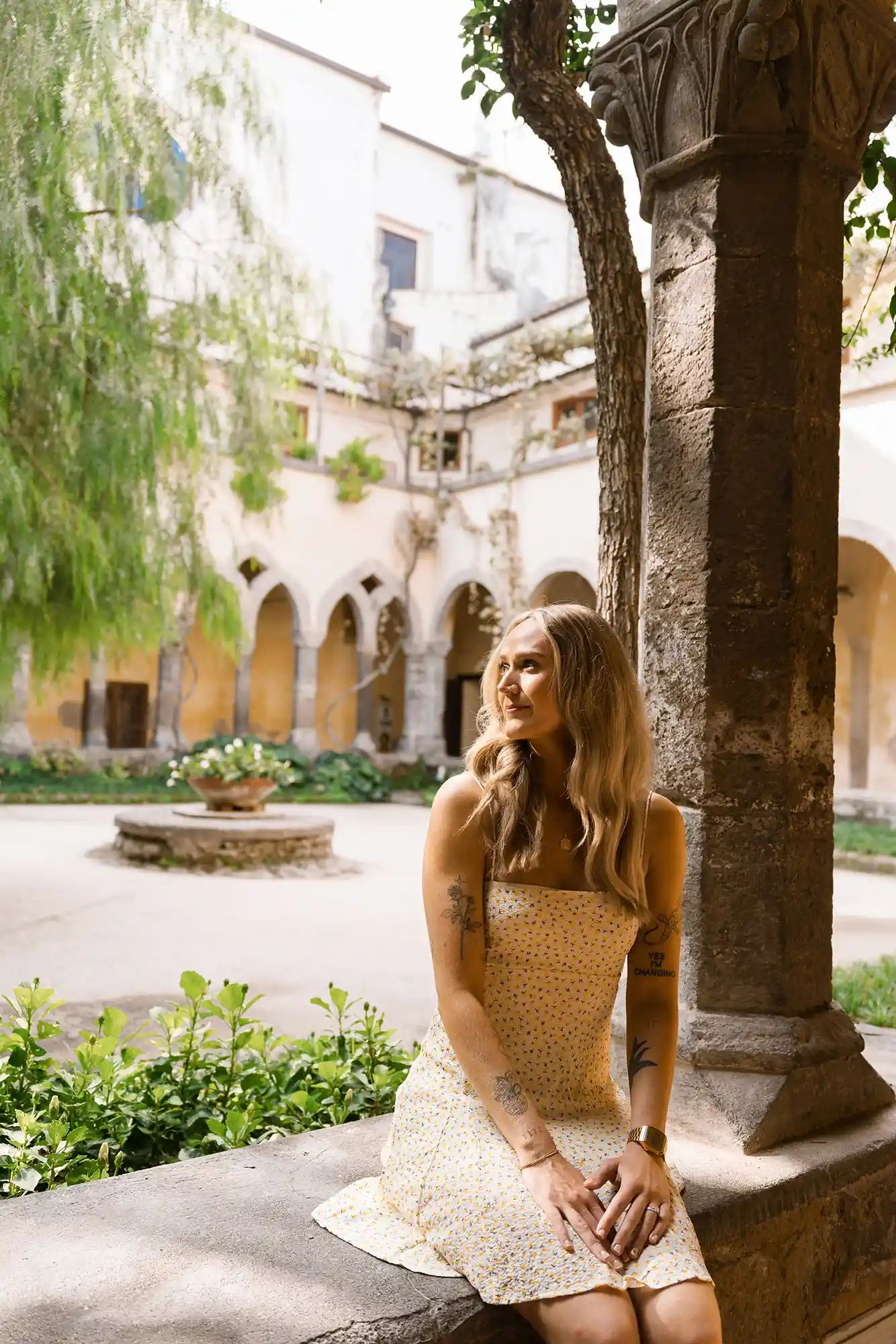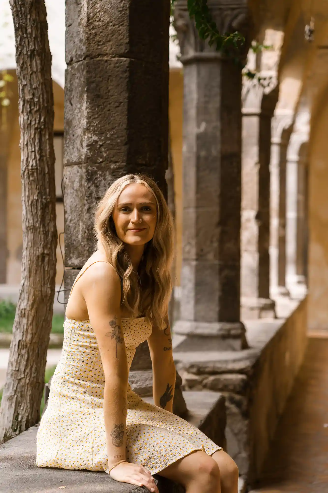 I had carefully prepared a few references for our photography session, imagining soft movements and natural connection. But as soon as we met in the center of Sorrento, near its beautiful historic church and Chiostro di San Francesco, everything became effortless. Their energy was open, joyful, and so genuine that posing almost felt unnecessary.