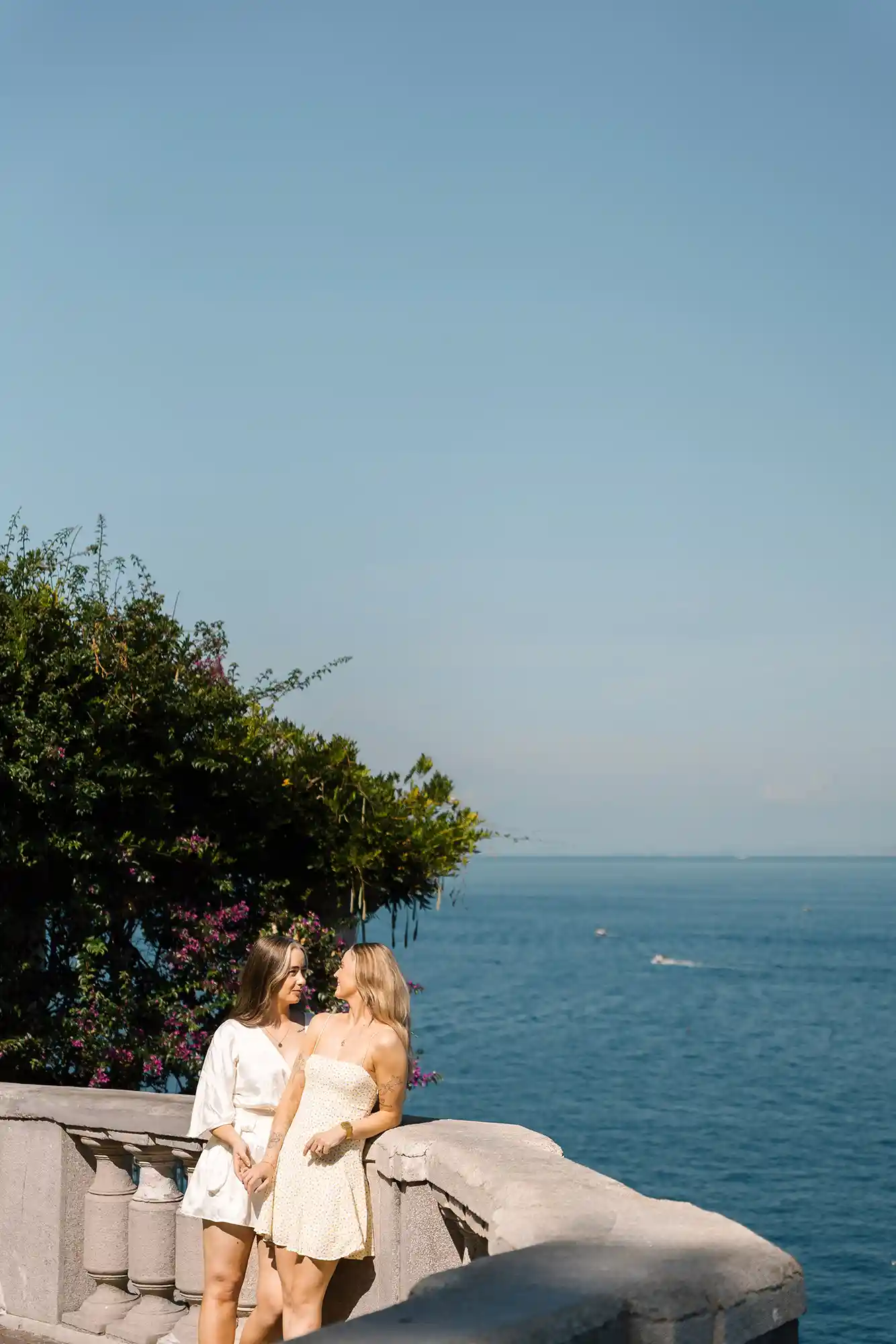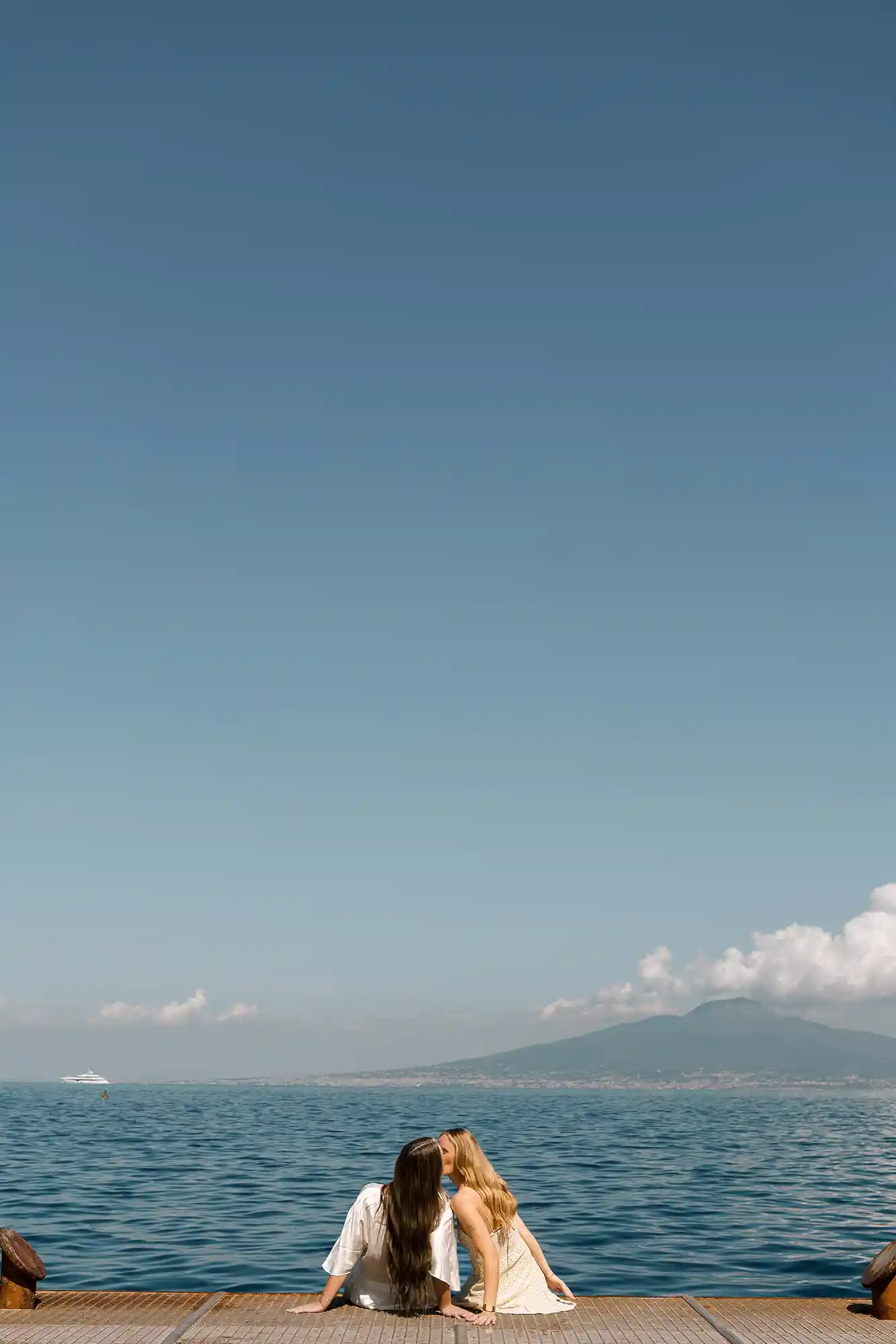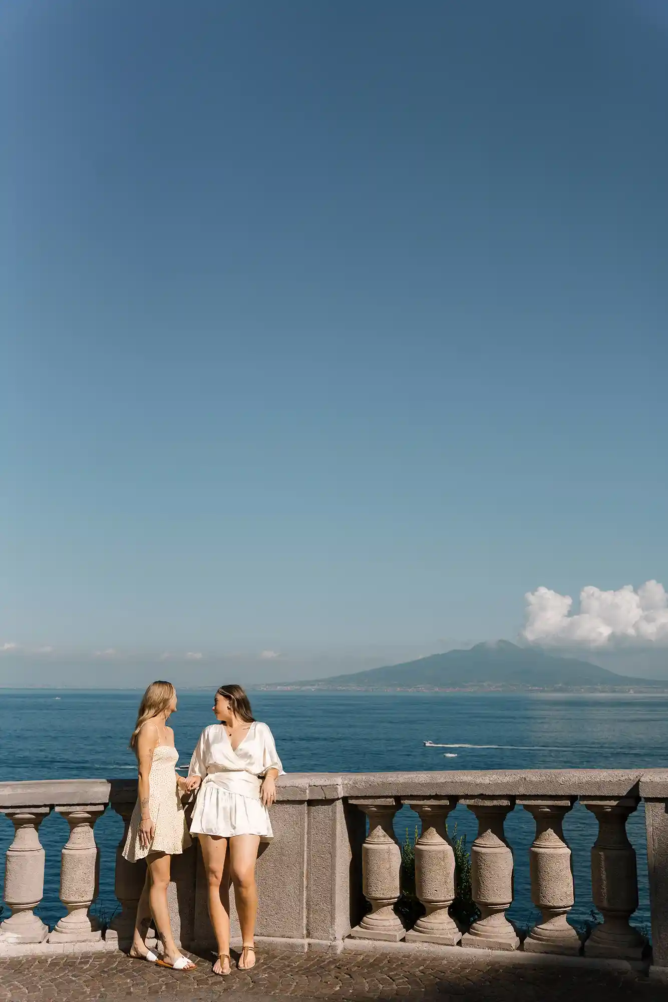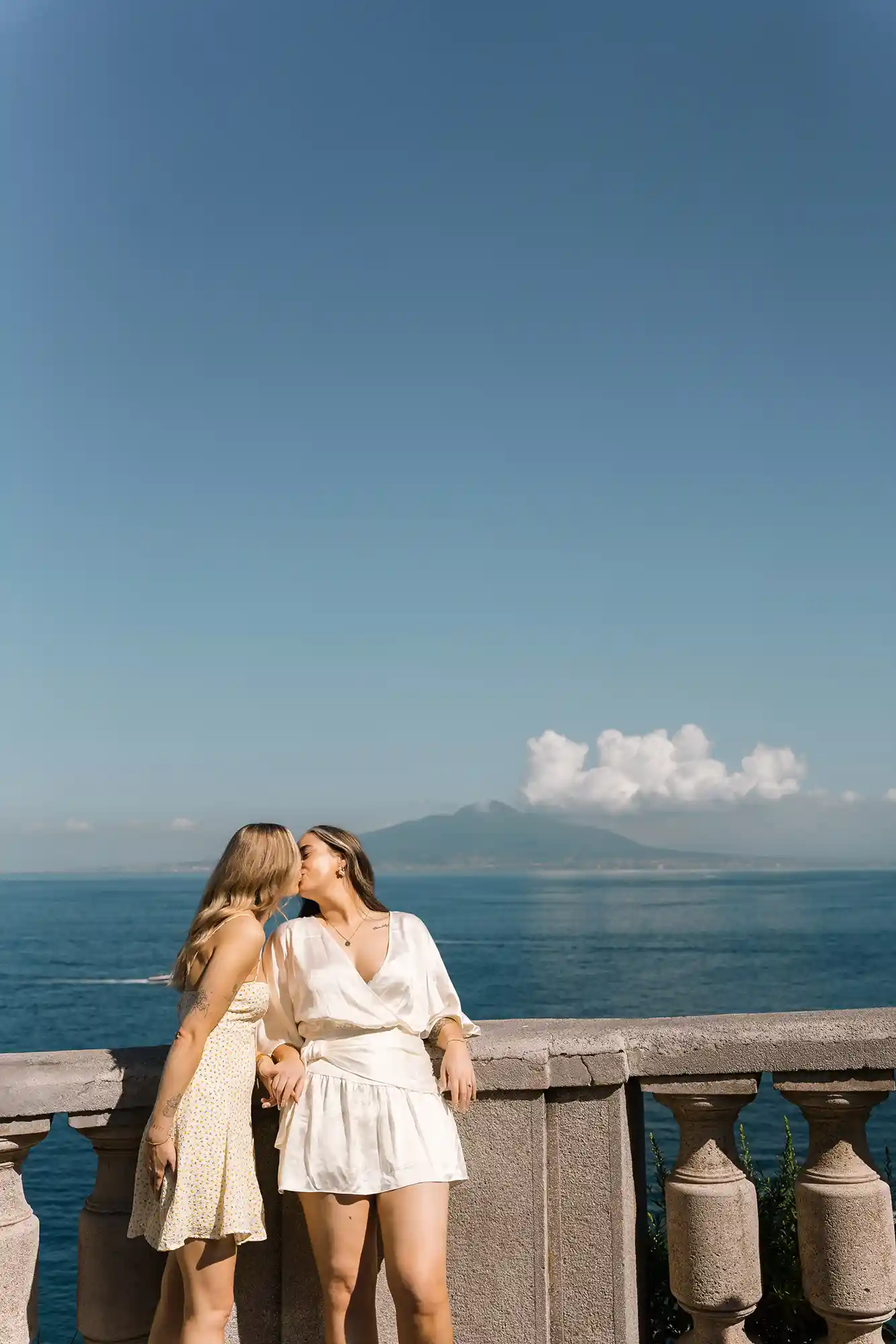 As we continued, the view opened up to the sea and Mount Vesuvius in the distance. We paused there, creating both shared moments and individual portraits, balancing closeness with quiet individuality. This romantic photoshoot in Sorrento felt incredibly natural — not staged, not forced, just honest and full of love.