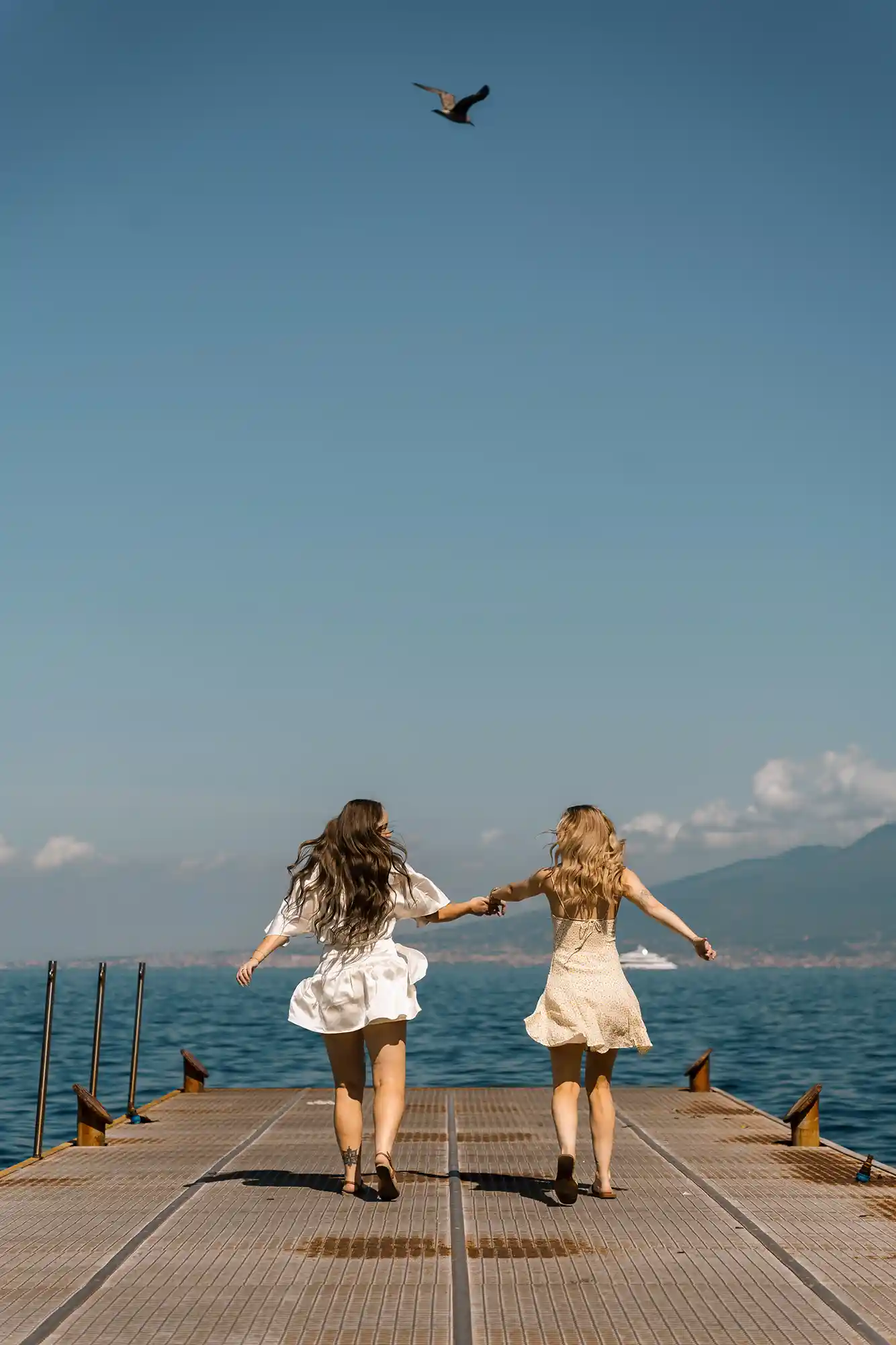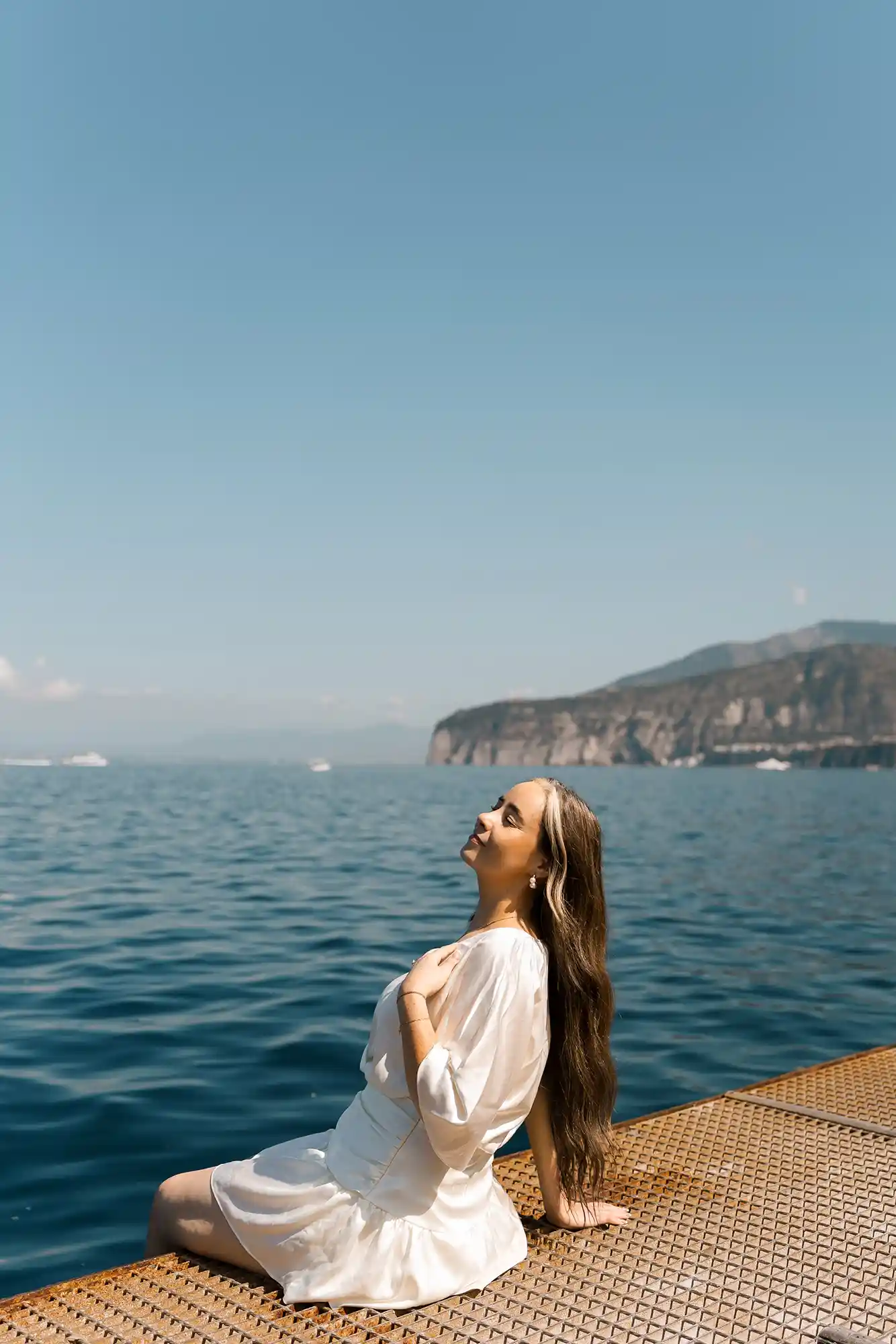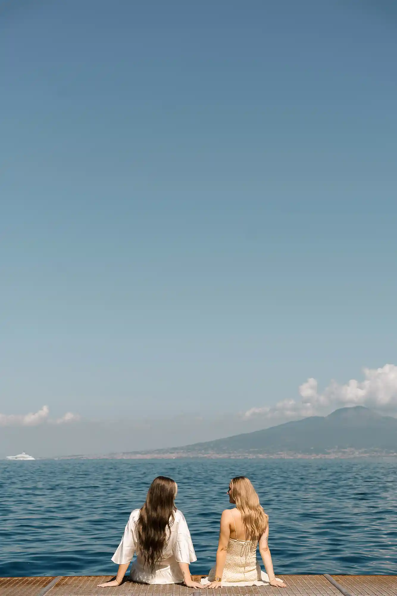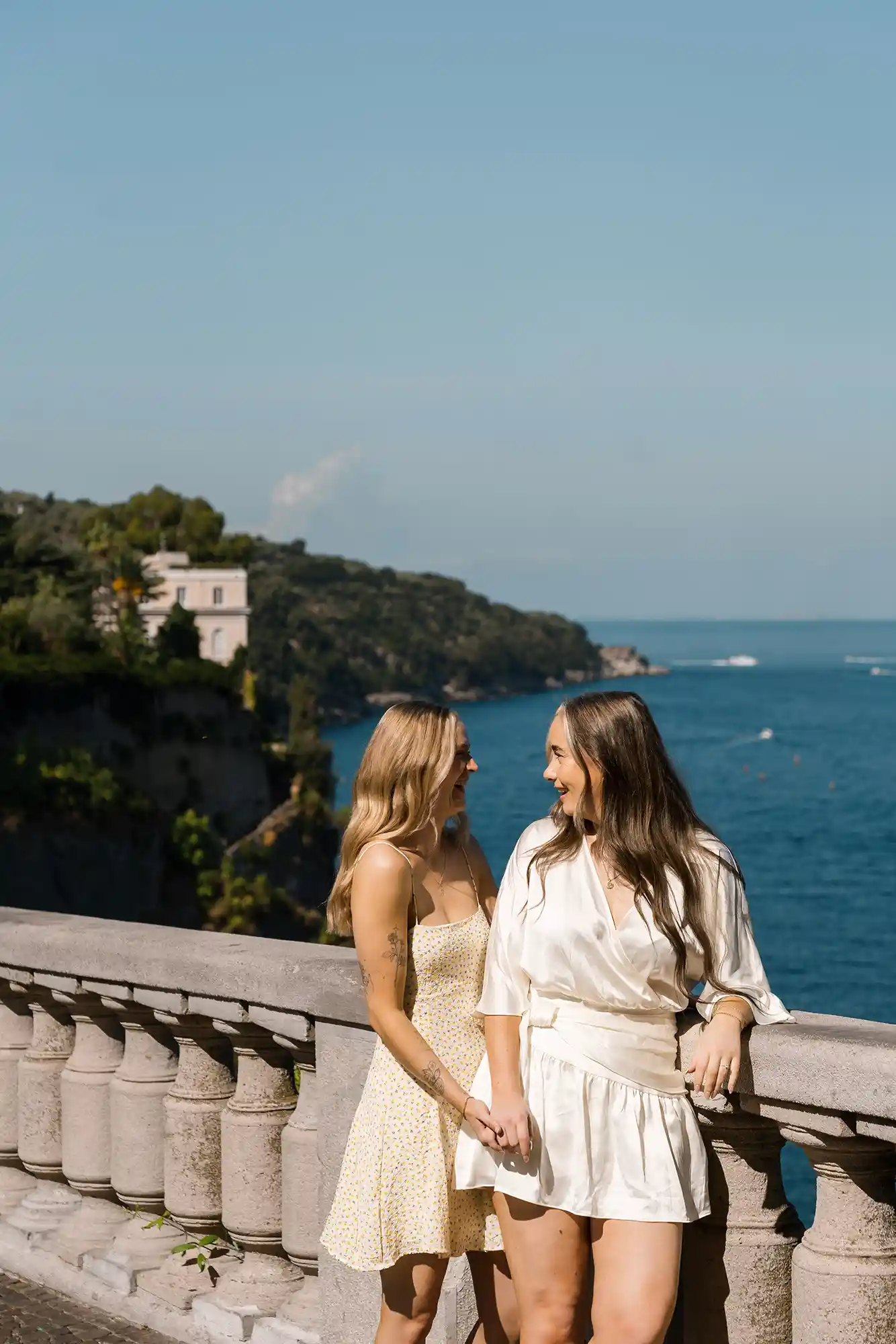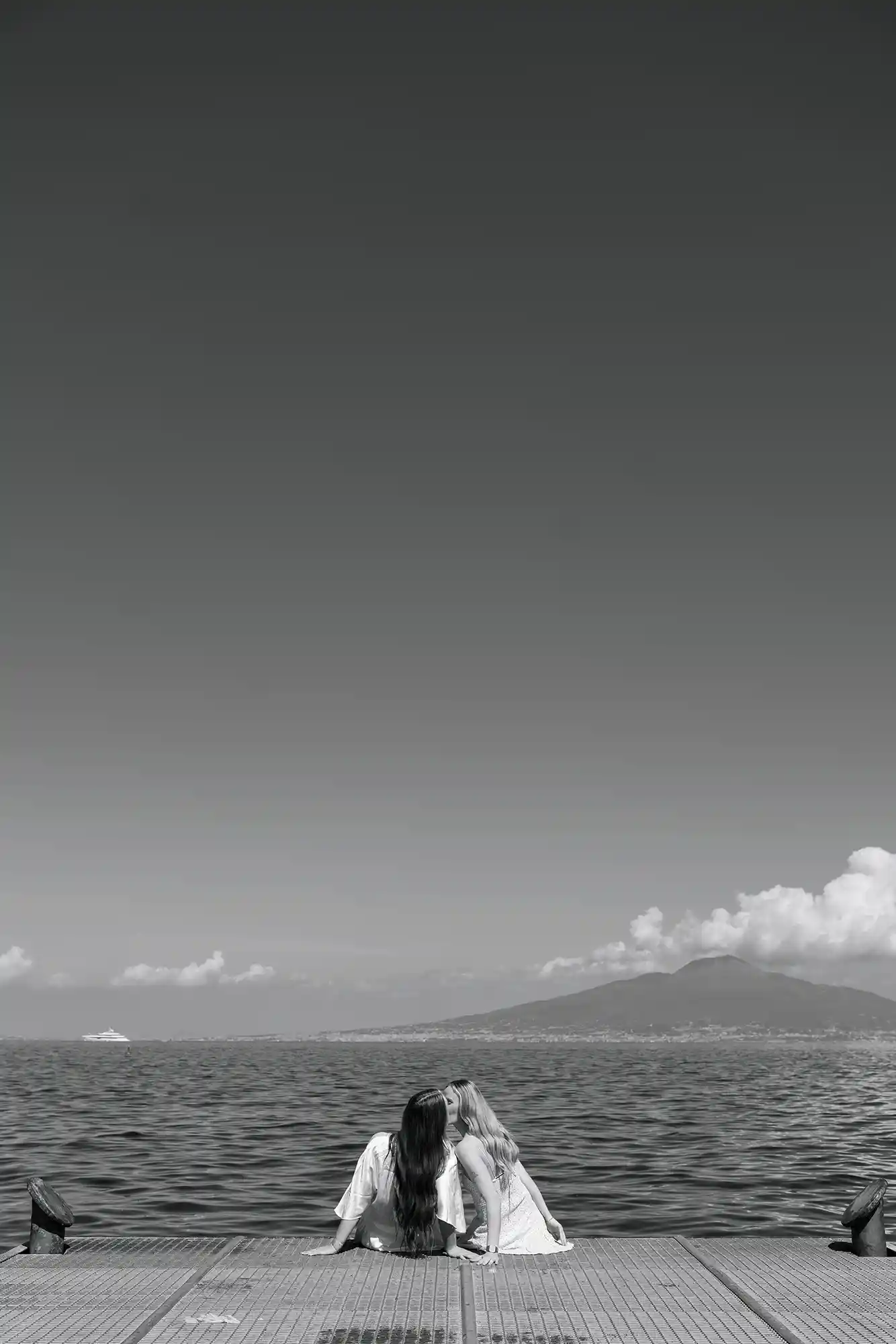 As we continued, the view opened up to the sea and Mount Vesuvius in the distance. We paused there, creating both shared moments and individual portraits, balancing closeness with quiet individuality. This romantic photoshoot in Sorrento felt incredibly natural — not staged, not forced, just honest and full of love.
