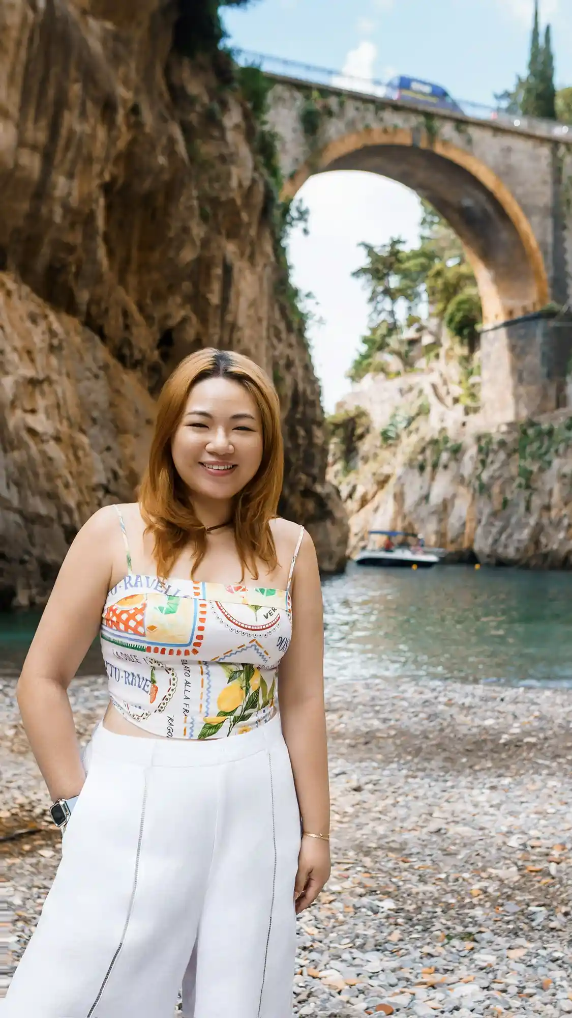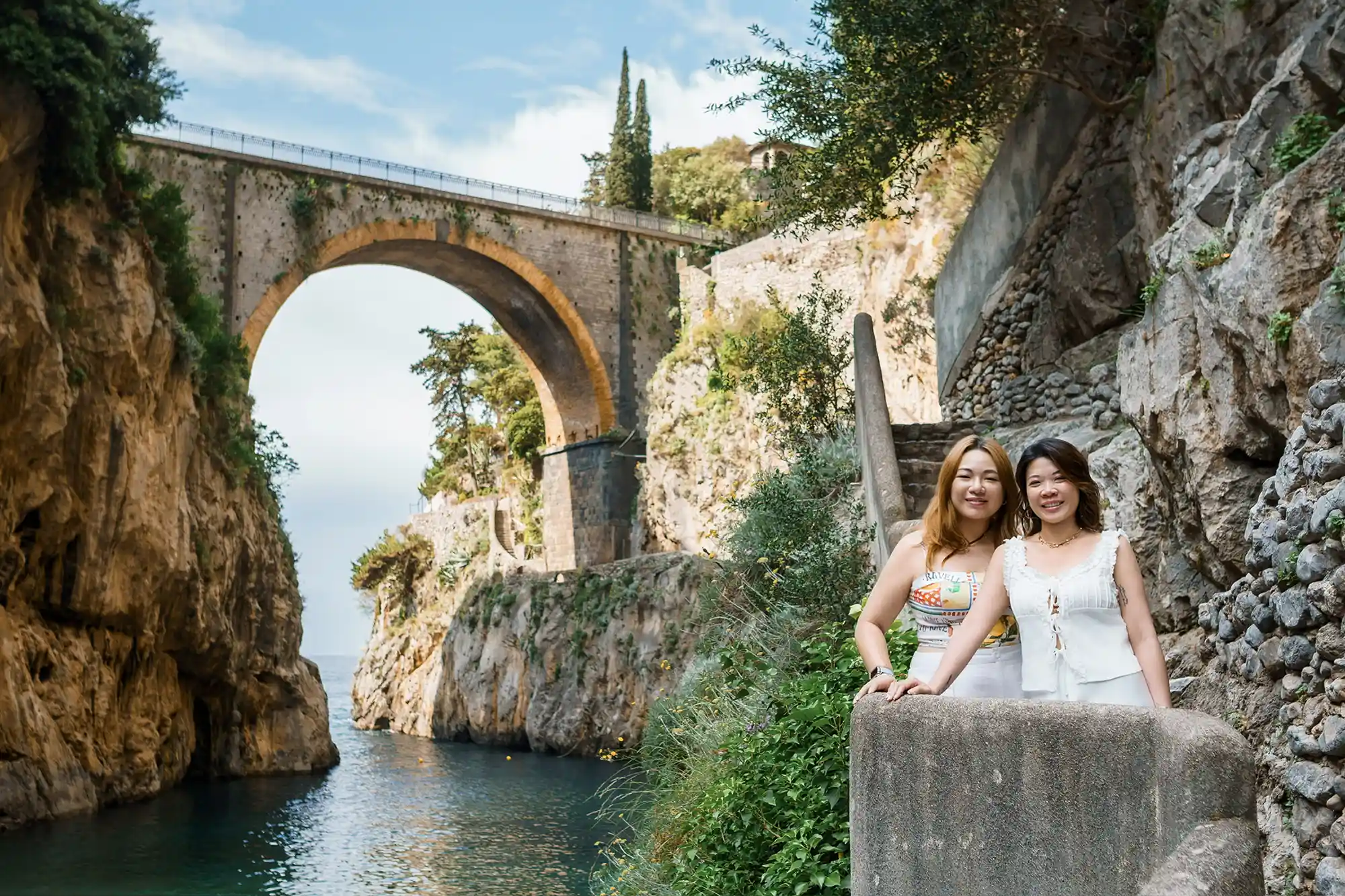 Our adventure began at 8 AM when I picked them up from their hotel. First stop — the magical Fiordo di Furore. It was calm, quiet, and dreamlike. We had the cliffside nearly to ourselves and captured soft, early light bathing the Amalfi Coast.