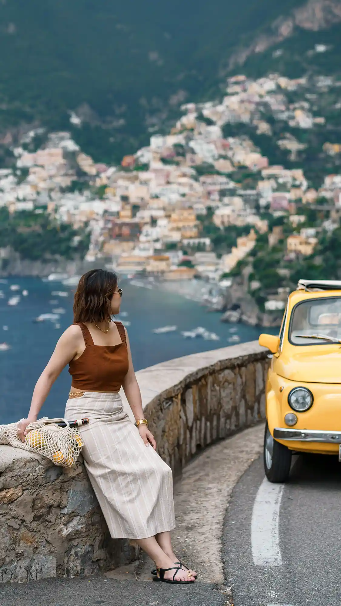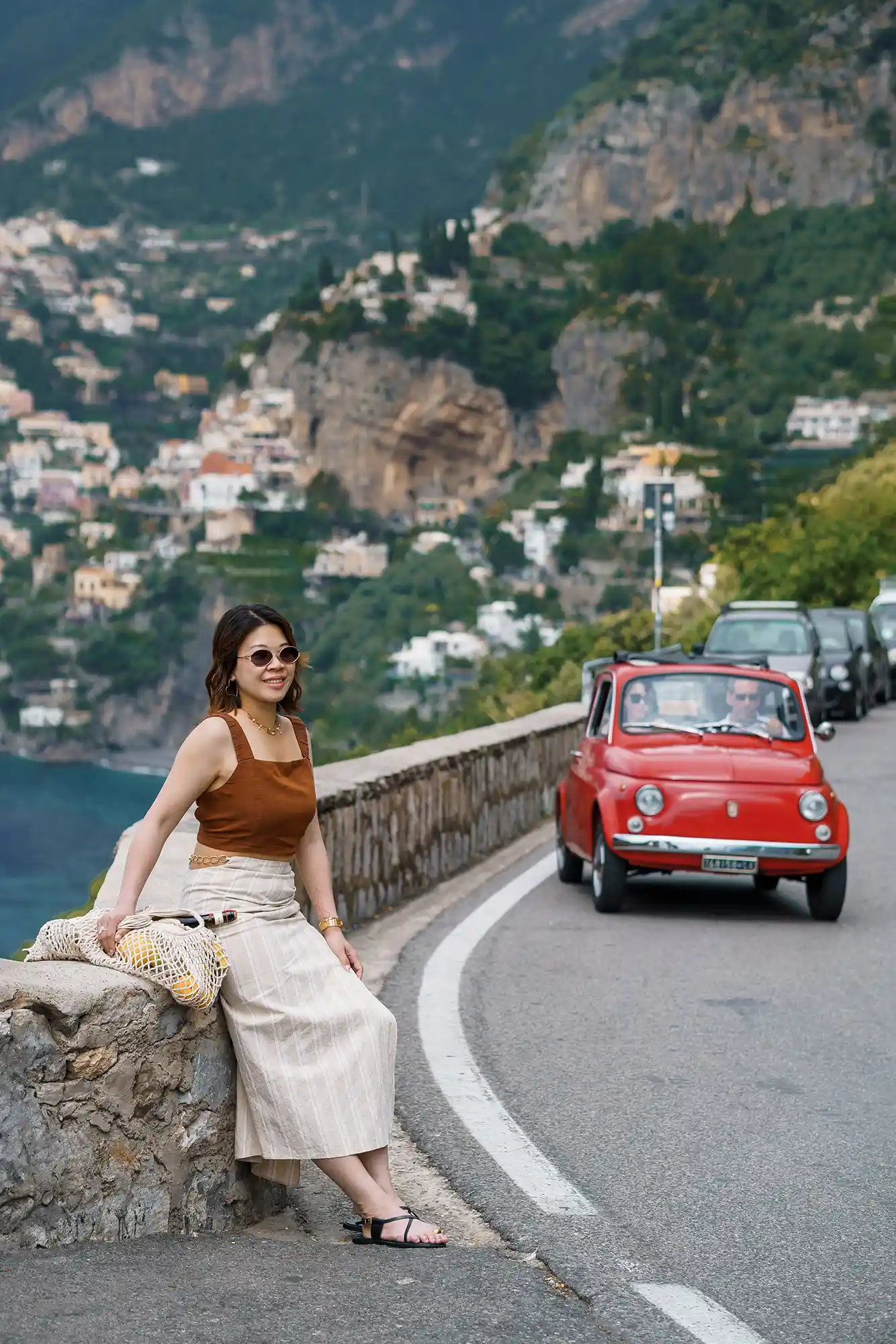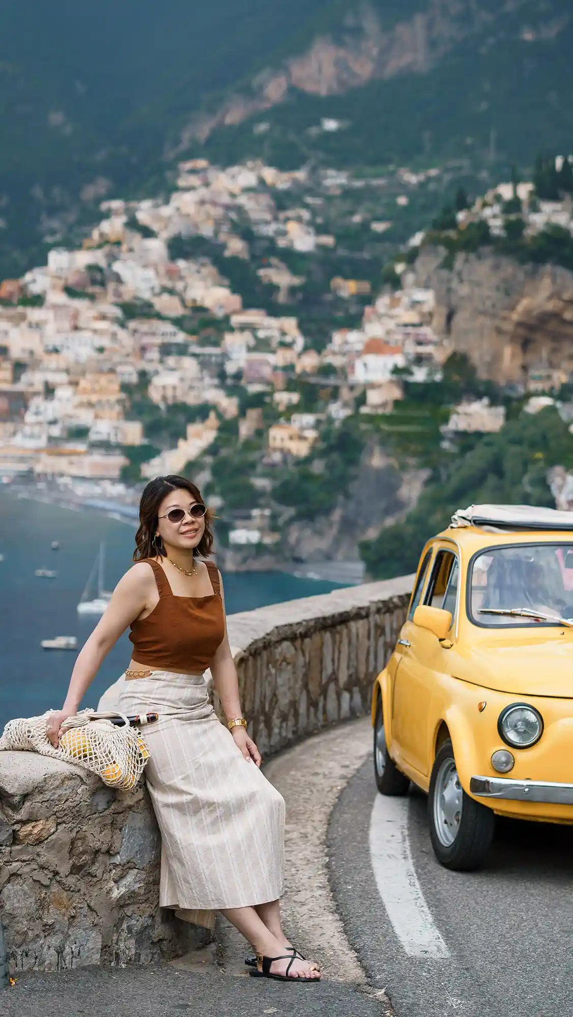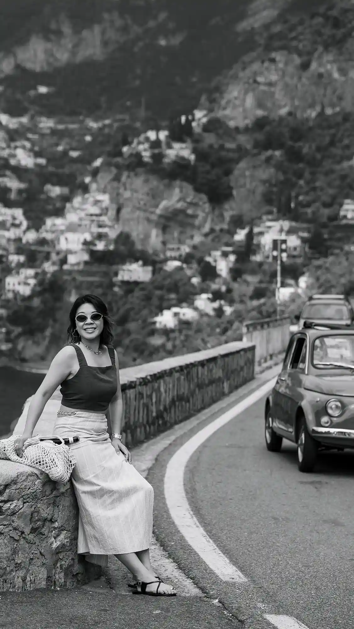 We were lucky to stumble upon vintage Fiat 500s, and of course, took some spontaneous, cinematic shots with them. Though we arrived in Positano later than planned, we embraced the vibrant crowds as part of the story. Some documentary-style photos captured the soul of the town — full of life, sunshine, and movement.