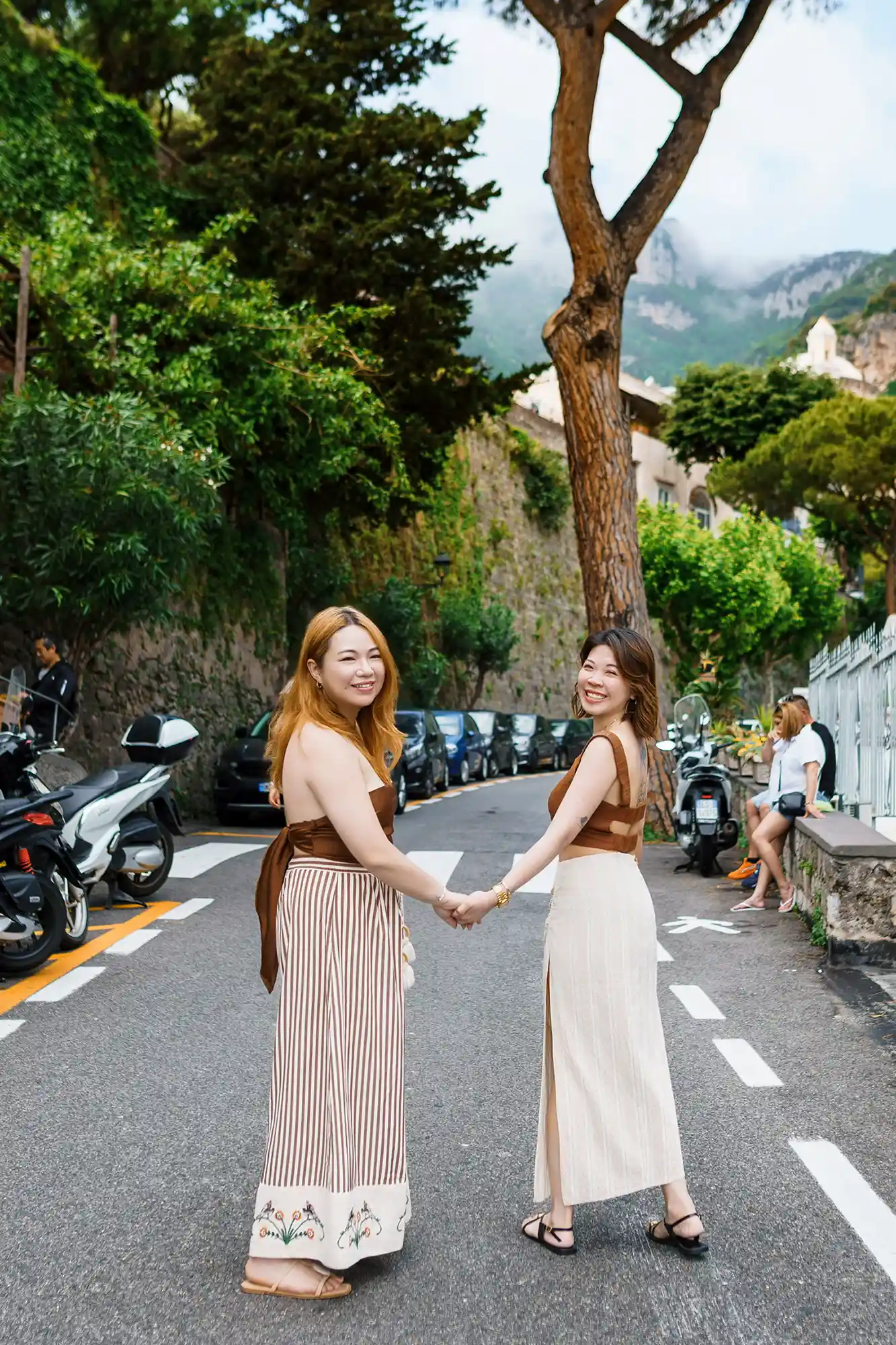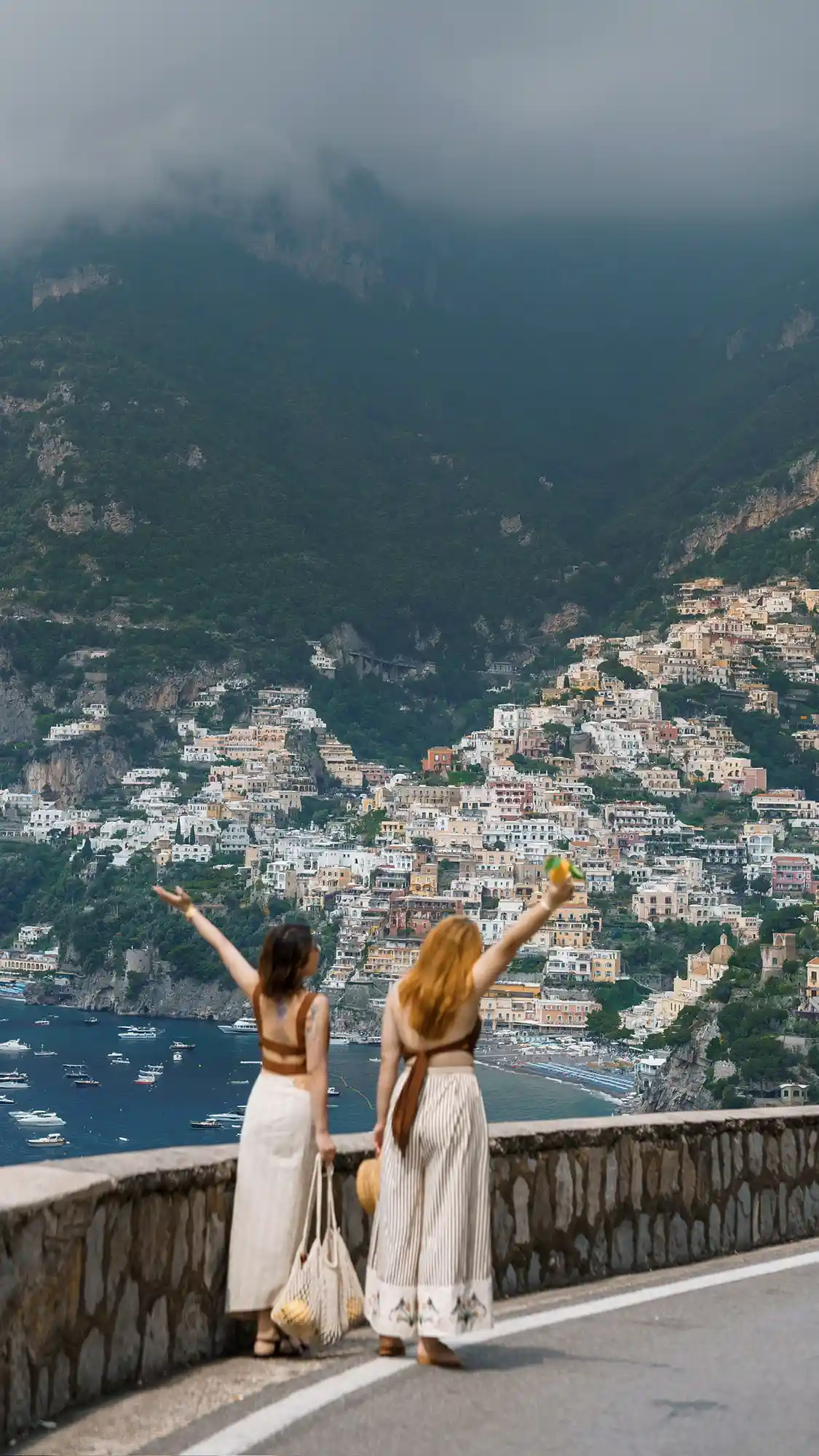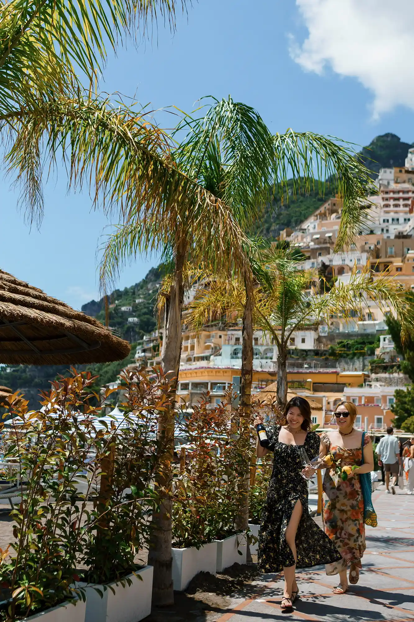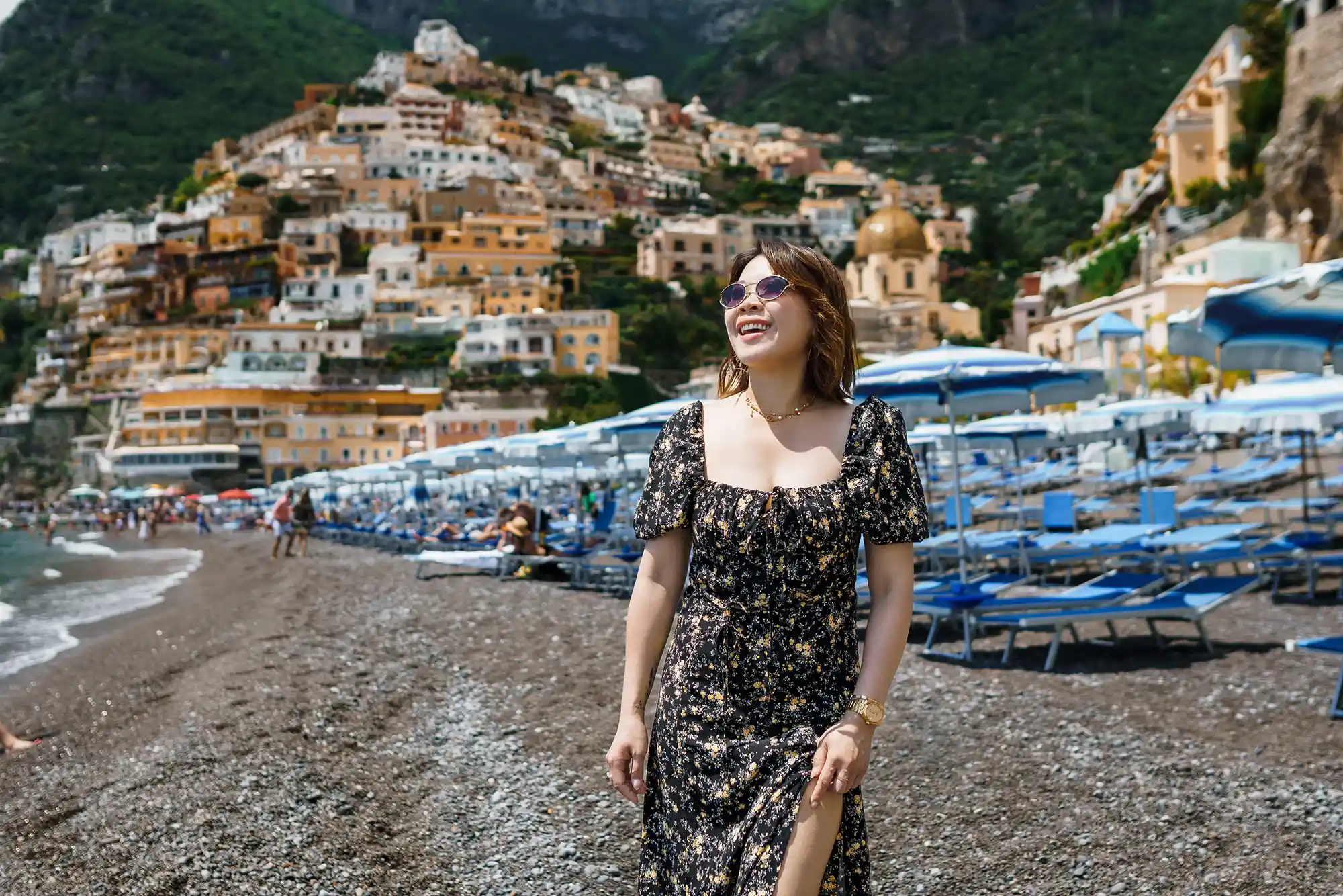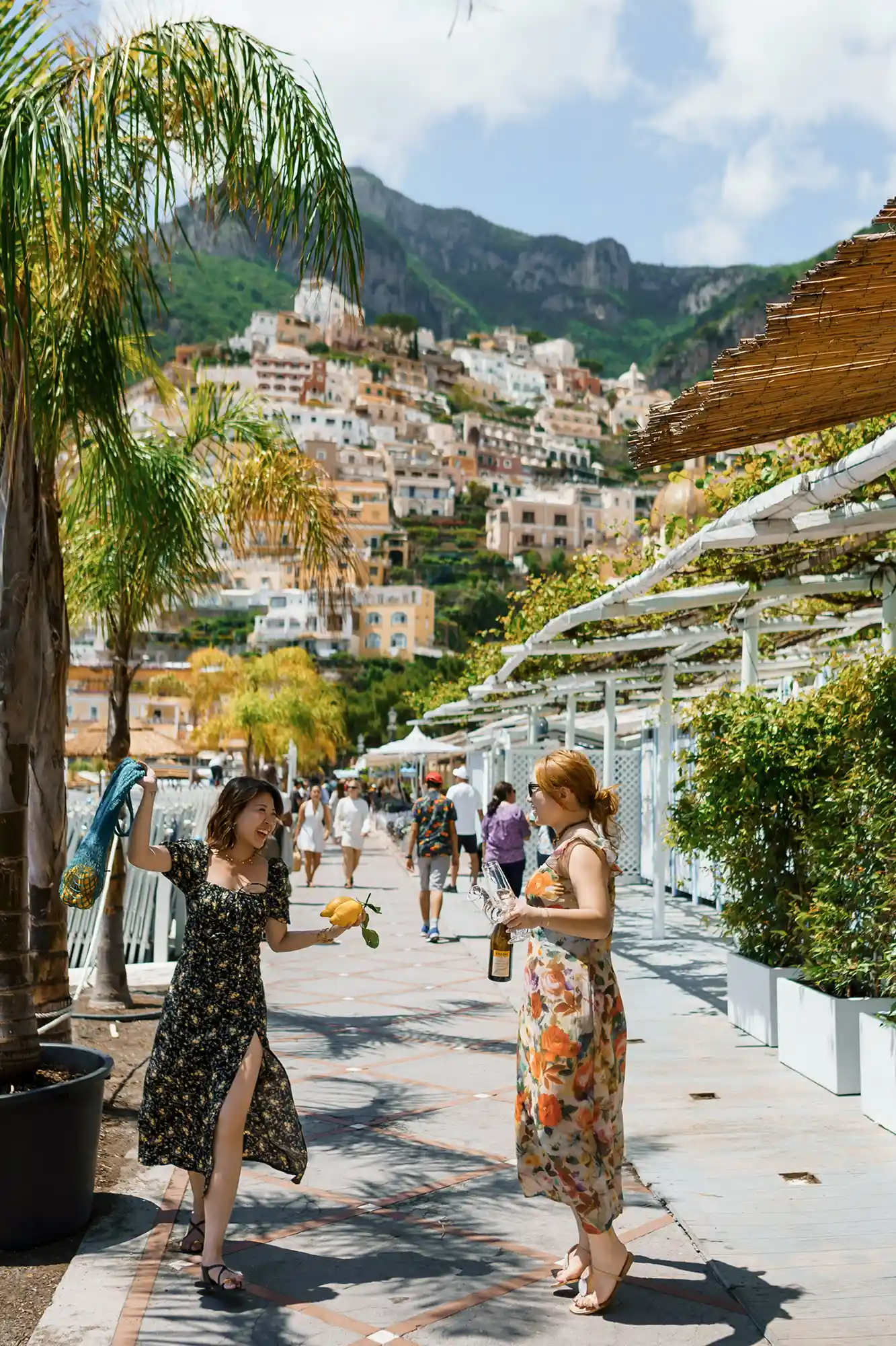 We were lucky to stumble upon vintage Fiat 500s, and of course, took some spontaneous, cinematic shots with them. Though we arrived in Positano later than planned, we embraced the vibrant crowds as part of the story. Some documentary-style photos captured the soul of the town — full of life, sunshine, and movement.