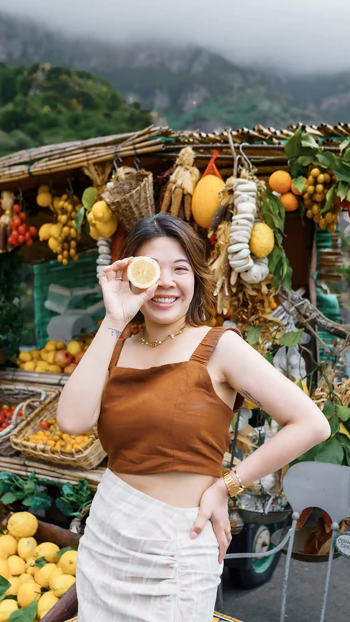 After a lunch break, our photography trip continued toward Positano. We paused at a famous overlook where Salvatore sells fresh produce from his colorful cart. It wasn’t just a photo location — it was a full-on Italian cultural experience. Salvatore welcomed us with open arms and let us shoot beside his picture-perfect setup.