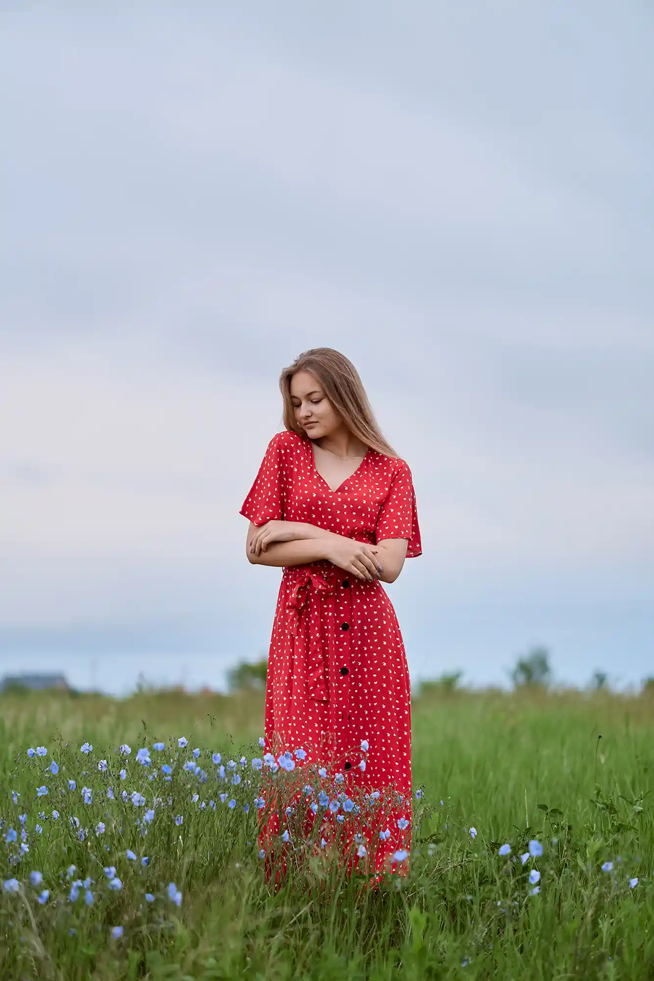 We found ourselves on the edge of a small village, surrounded by wild meadows, soft wind, and a sky painted with gentle, heavy clouds. The perfect backdrop for something truly special.